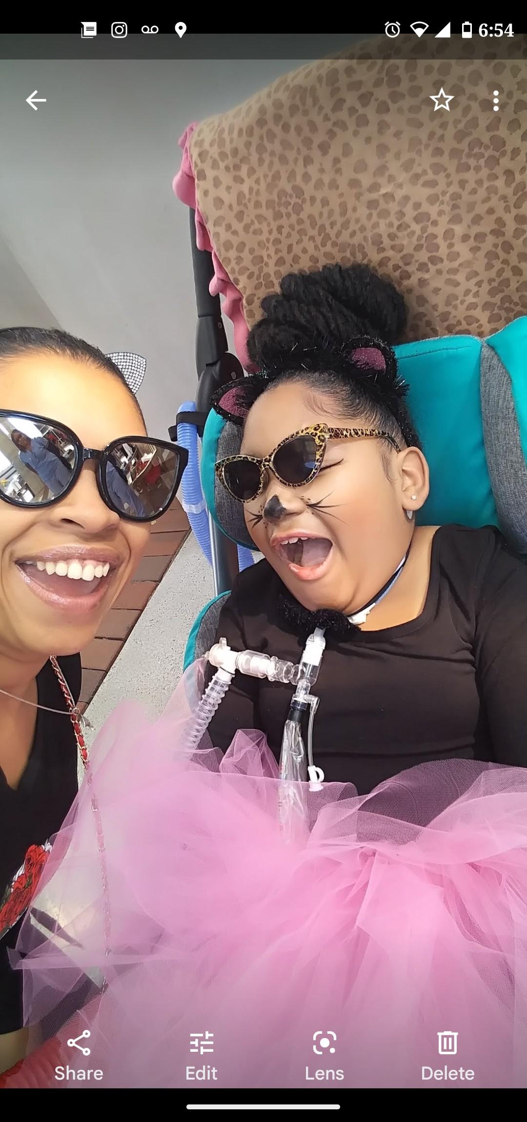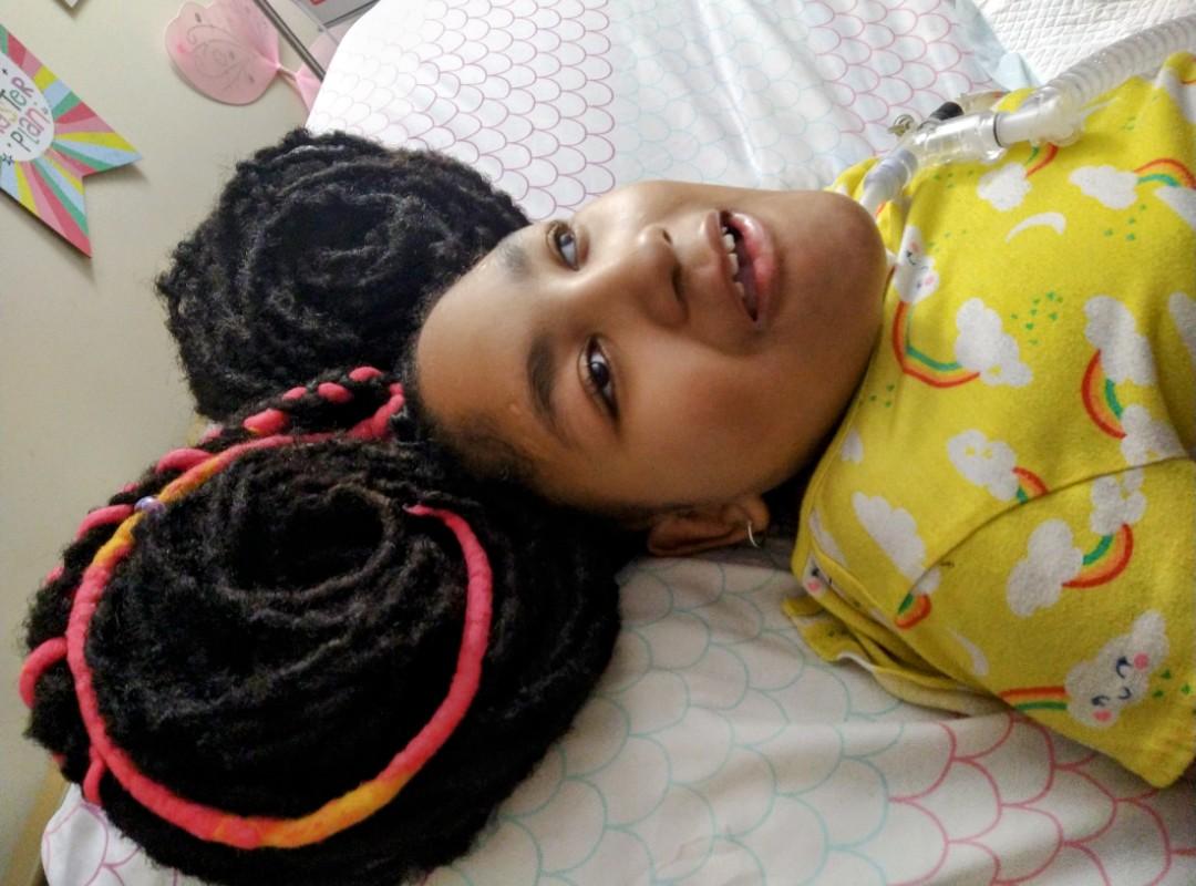 Sydney has severe cerebral palsy and is trached, on a ventilator, and fed via G-Tube.