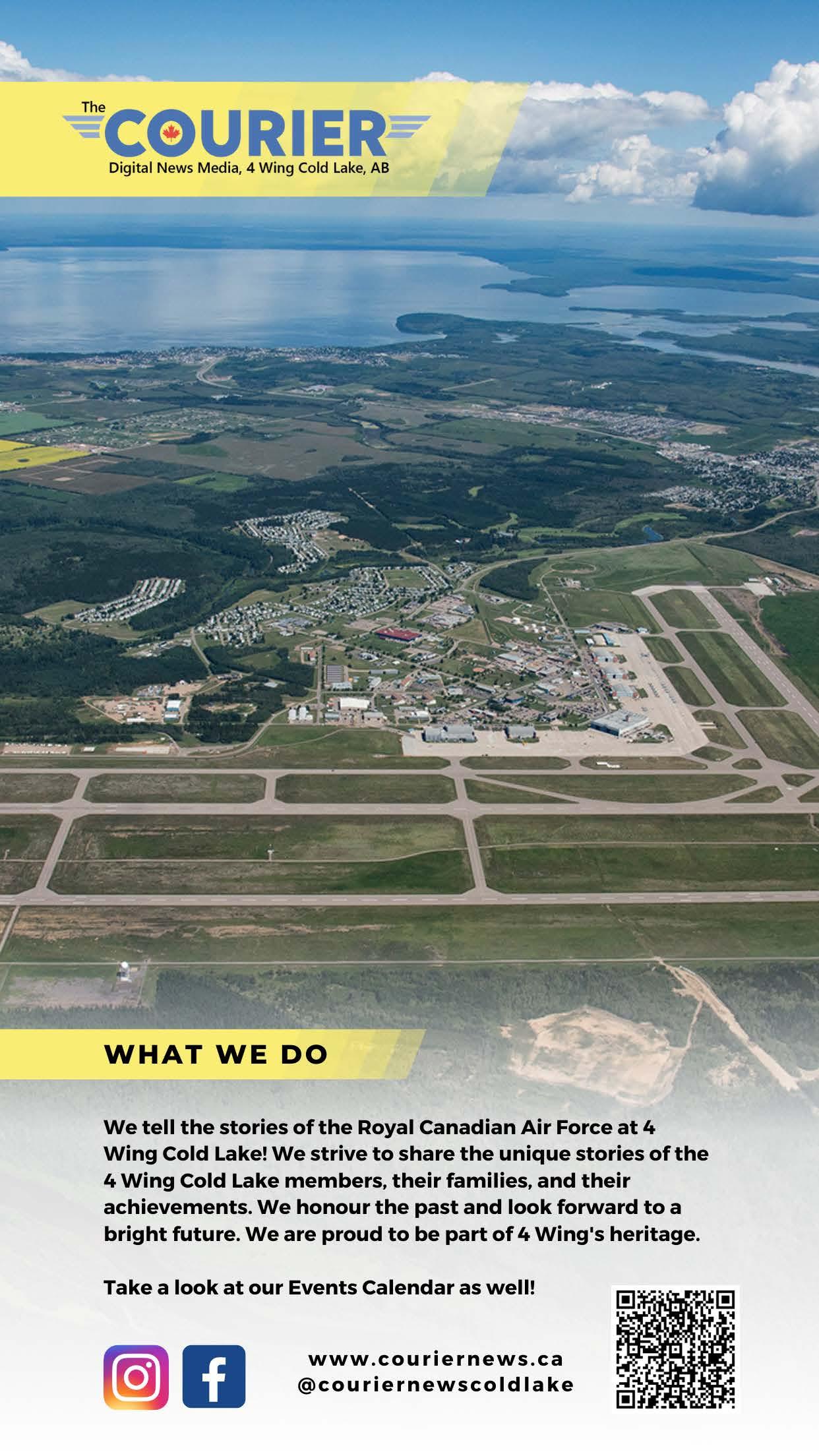 Our mission is to support the 4 Wing Cold Lake Defence Team by providing news, information, and engaging content. We also strive to connect with the business community to assist in offering programs and events that enhance the morale and wellness of the military community.