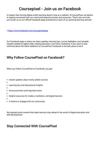 In today’s fast-moving digital world, learning doesn’t stop at a website. At CoursePixel, we believe in staying connected with our community beyond courses and resources. That’s why we invite you to join us on our ofcial Facebook page and become a part of our growing learning network.