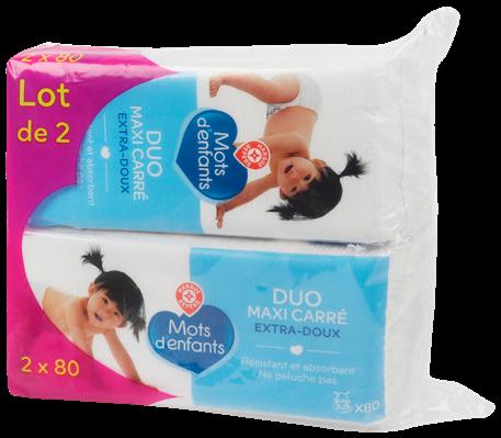 COTON BÉBÉ MAXI CARRÉ “MOTS D'ENFANTS” Le lot de 2 x 80 (160 cotons).