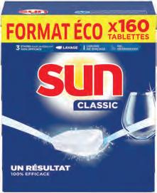TABLETTES LAVE-VAISSELLE(1)(2) “SUN” Classic. 160 lavages. 1,52 kg. Le kg : 10,50 €.