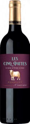 AOP(1) BORDEAUX ROUGE "LES CINQ PATTES" 2023. 6 x 75 cl (4,5 L). Le L : 5,31 €. Également disponible au même prix : Rosé 2022, Blanc 2023.