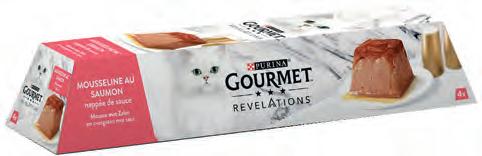 2€,28 2+1 OFFERT L'UNITÉ MOUSSELINE RÉVÉLATIONS GOURMET “PURINA” 228 g. Le kg : 9,87 €. Par 2 (456 g) : 3,15 € au lieu de 4,50 €. Le kg : 6,91 €. Différentes variétés.(1)
