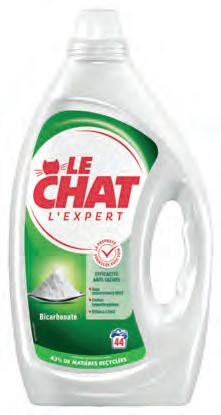 LESSIVE LIQUIDE “LE CHAT” Au choix : L'expert Bicarbonate ou Souffle de fraîcheur. 44 lavages. 1,98 L.