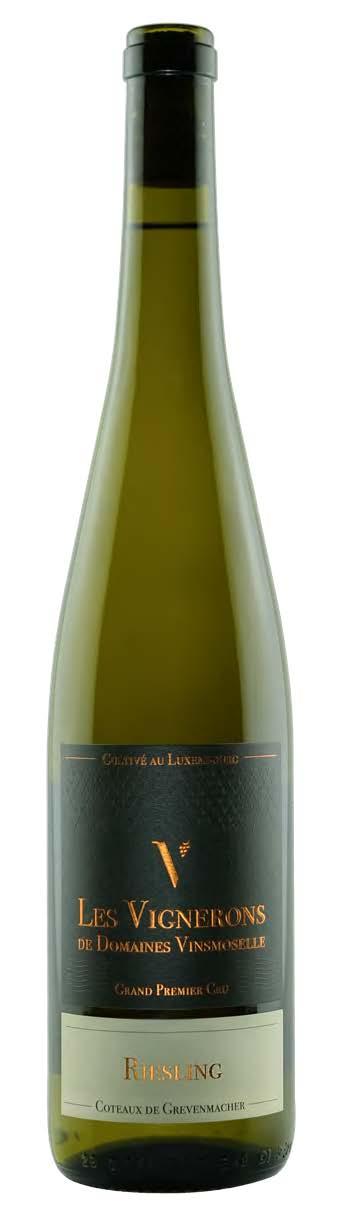 3 crémants de Luxembourg : Cuvée Extra-Brut, Cuvée Brut et Cuvée Pinot. 12,5% vol.