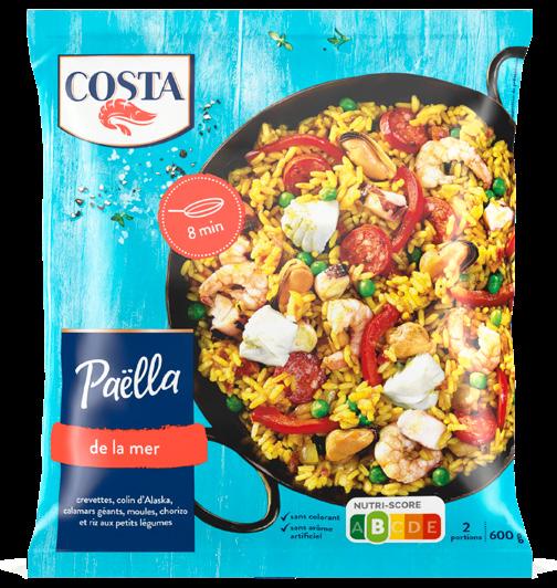 PAËLLA DE LA MER SURGELÉE “COSTA” 600 g. Le kg : 5,47 €.