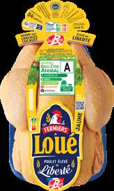 LABEL ROUGE VOLAILLES DU MAINE IGP(1) “LES FERMIERS DE LOUÉ” Environ 1,4 kg. Groupement détenteur du label : Les fermiers de Loué Organisme certificateur : Certipaq Alimentation : 80% de céréales minimum 84 jours d’élevage minimum. Origine : France.