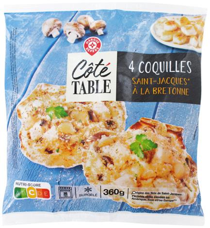 4 COQUILLES SAINT-JACQUES* À LA BRETONNE SURGELÉES “CÔTÉ TABLE”