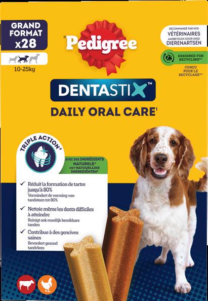 BÂTONNETS HYGIÈNE BUCCO-DENTAIRE POUR MOYEN CHIEN DENTASTIX “PEDIGREE” 720 g. Le kg : 5,68 €.