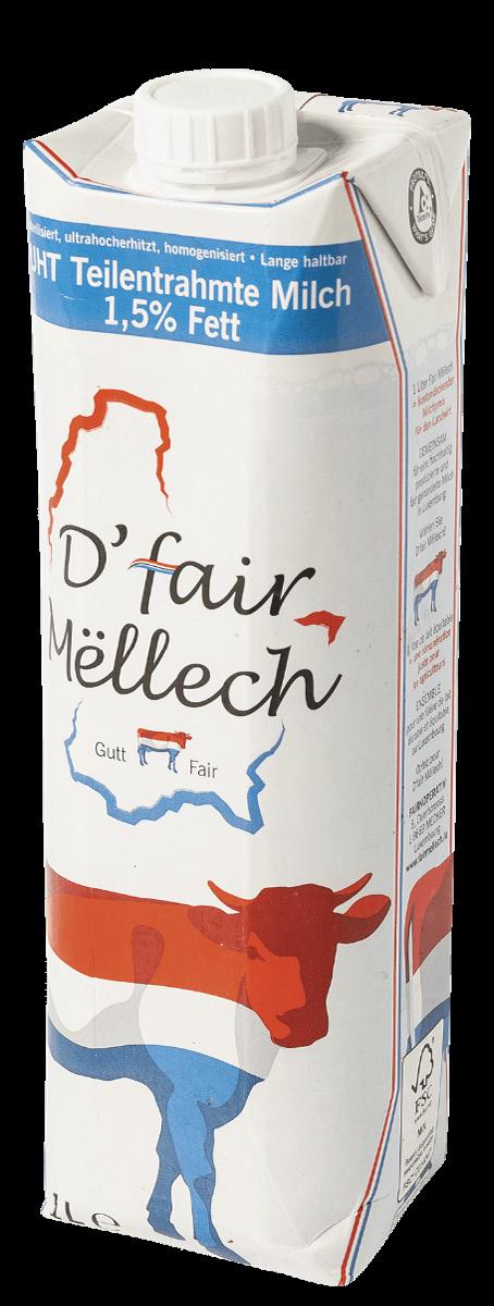 LAIT UHT 1,5 % MAT. GR.(2) “D’FAIR MËLLECH” 1 L. Origine : Luxembourg.