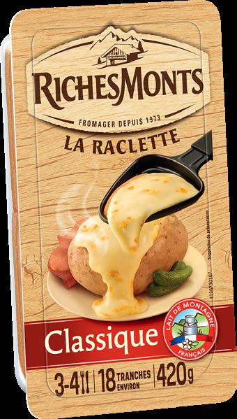 LA RACLETTE CLASSIQUE 26% MAT.GR.(1) “RICHESMONTS” 3 à 4 personnes. 18 tranches environ.
