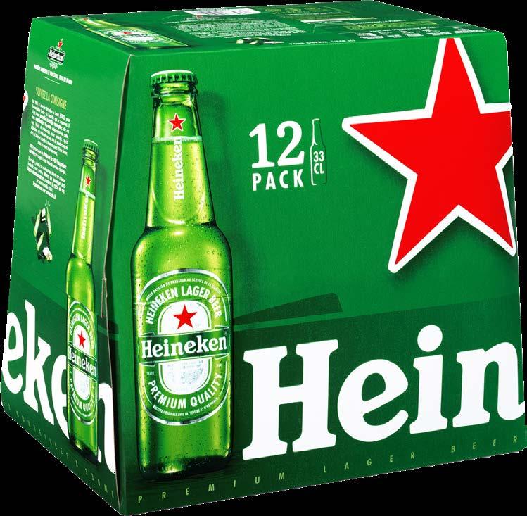 BIÈRE BLONDE “HEINEKEN” 5% vol. 12 x 33 cl. (3,96 L). Le L : 2,05 €.