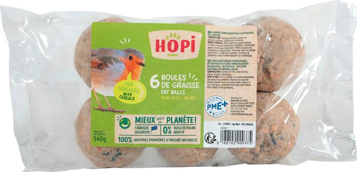 Composées de céréales. Pour oiseaux de la nature. 540 g. Le kg : 1,35 €. Existe aussi en saveur graines et fruits par 10 (880 g) au prix de 3,25 € avec une remise immédiate de 34 % soit 2,14 €. Le kg : 2,43 €.(2)