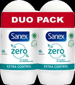 “SANEX 0%” Au choix : Extra control ou Sensitive. 2 x 50 ml (100 ml). Le L : 31,90 €.
