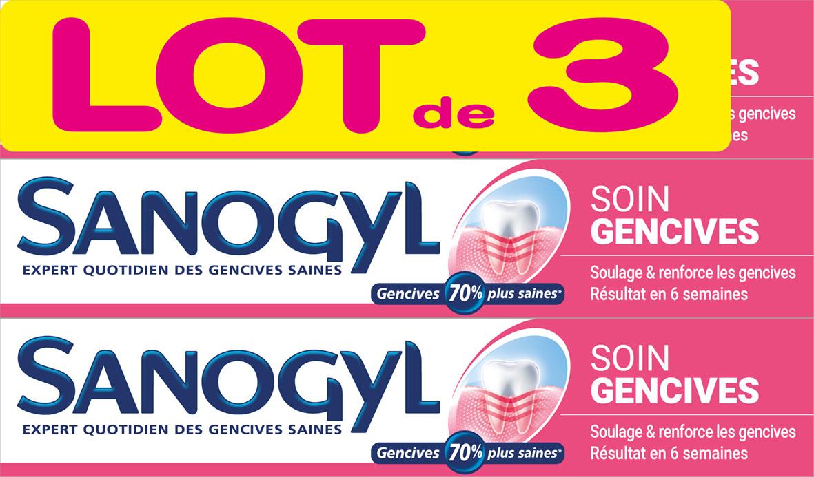 Au choix: Soins gencives, Blancheur ou Global. 3 x 75 ml (225 ml). Le L : 17,56 €.