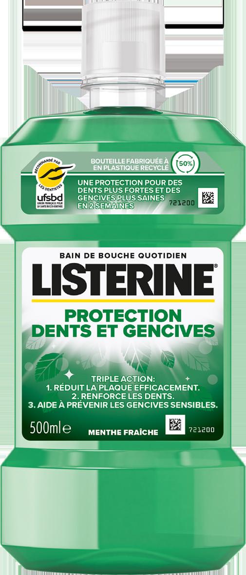 Au choix: Protection dents et gencives, ou Fraîcheur Goût plus léger. 500 ml. Le L : 3,98 €.