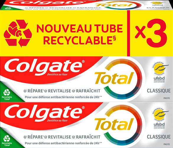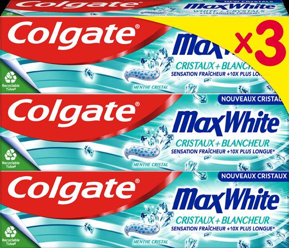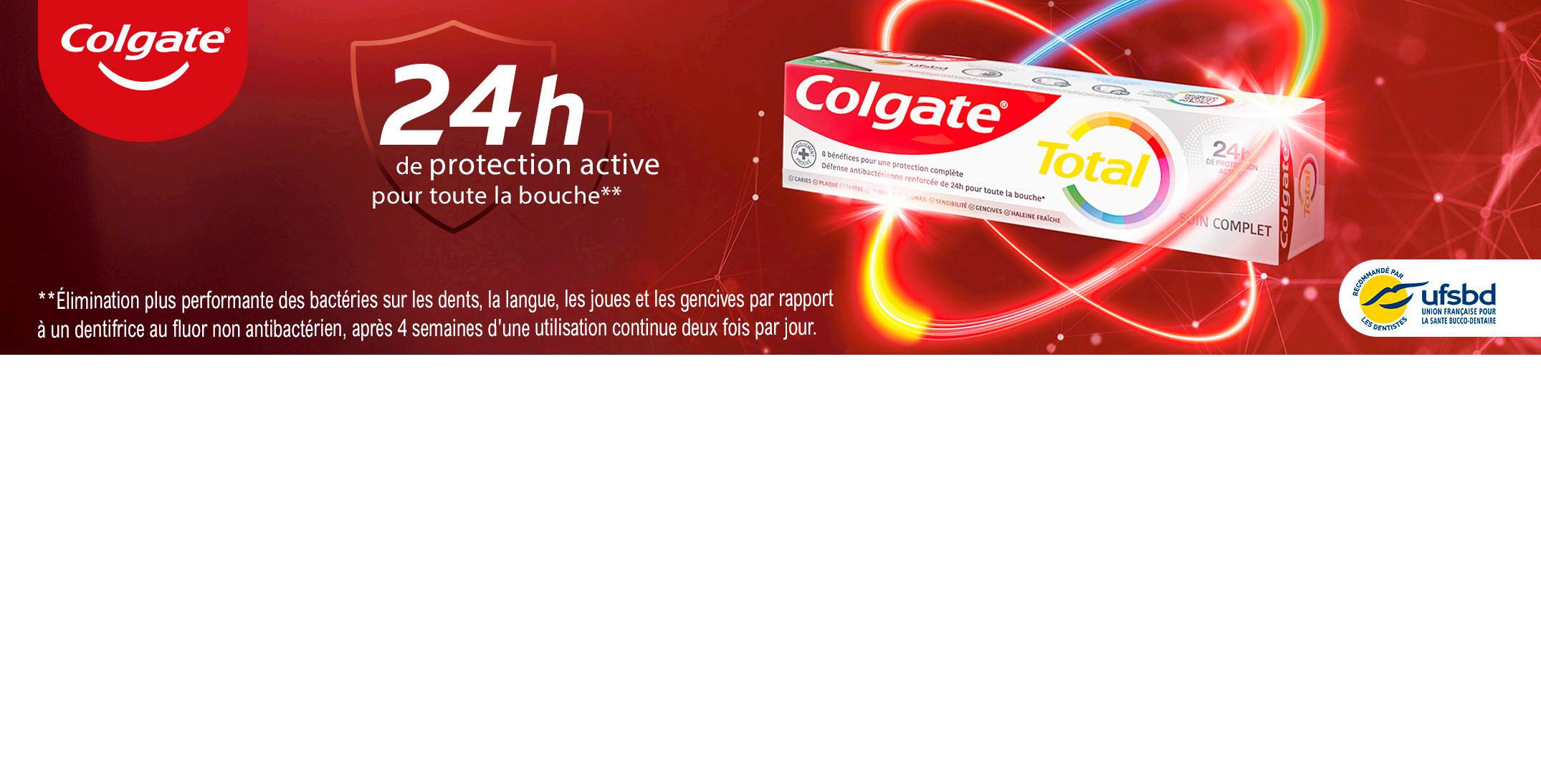 10 OFFRES VALABLES SUR LES PRODUITS PRÉSENTS DANS LES MAGASINS PARTICIPANTS À L'OPÉRATION DENTIFRICE “COLGATE TOTAL” Au choix : Classic, Blancheur ou Color Change. 3 x 75 ml (225 ml). Le L : 15,82 €. 5€,39 3€,56 -34 % DENTIFRICE “COLGATE MAX WHITE” Au choix : Maxwhite Cristaux+Blancheur ou Colgate Maxfresh Cristaux fraîcheur 3 x 75 ml (225 ml). Le L : 16 €. 5€,45 3€,60 -34 %