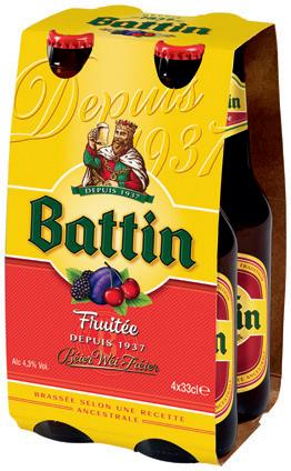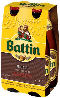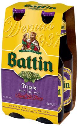 "BATTIN" : - 4 X 33 CL : BLANCHE, BRUNE, EXTRA (HORS VIDANGES), FRUITÉE OU TRIPLE.