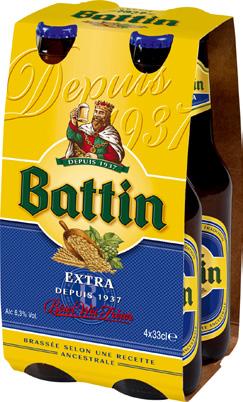 "BATTIN" : - 4 X 33 CL : BLANCHE, BRUNE, EXTRA (HORS VIDANGES), FRUITÉE OU TRIPLE.