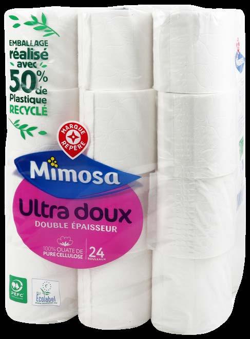PAPIER TOILETTE BLANC DOUBLE ÉPAISSEUR “MIMOSA” 24 rouleaux. Par 2 : 6,31 € au lieu de 8,42 €. -50 %