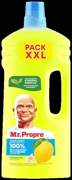 NETTOYANT MÉNAGER(1)(2) “MR PROPRE” Au choix : Citron ou Coton. 2 L. Le L : 1,80 €.