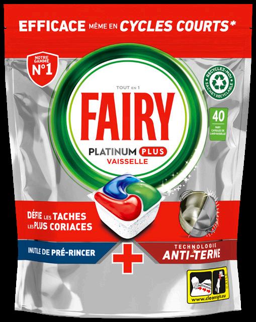 TABLETTES LAVE-VAISSELLE(1)(2) “FAIRY ” Format Platinum Plus. Original, Citron, Propreté Intense ou Nettoyant Machine. 40 doses (481 g).