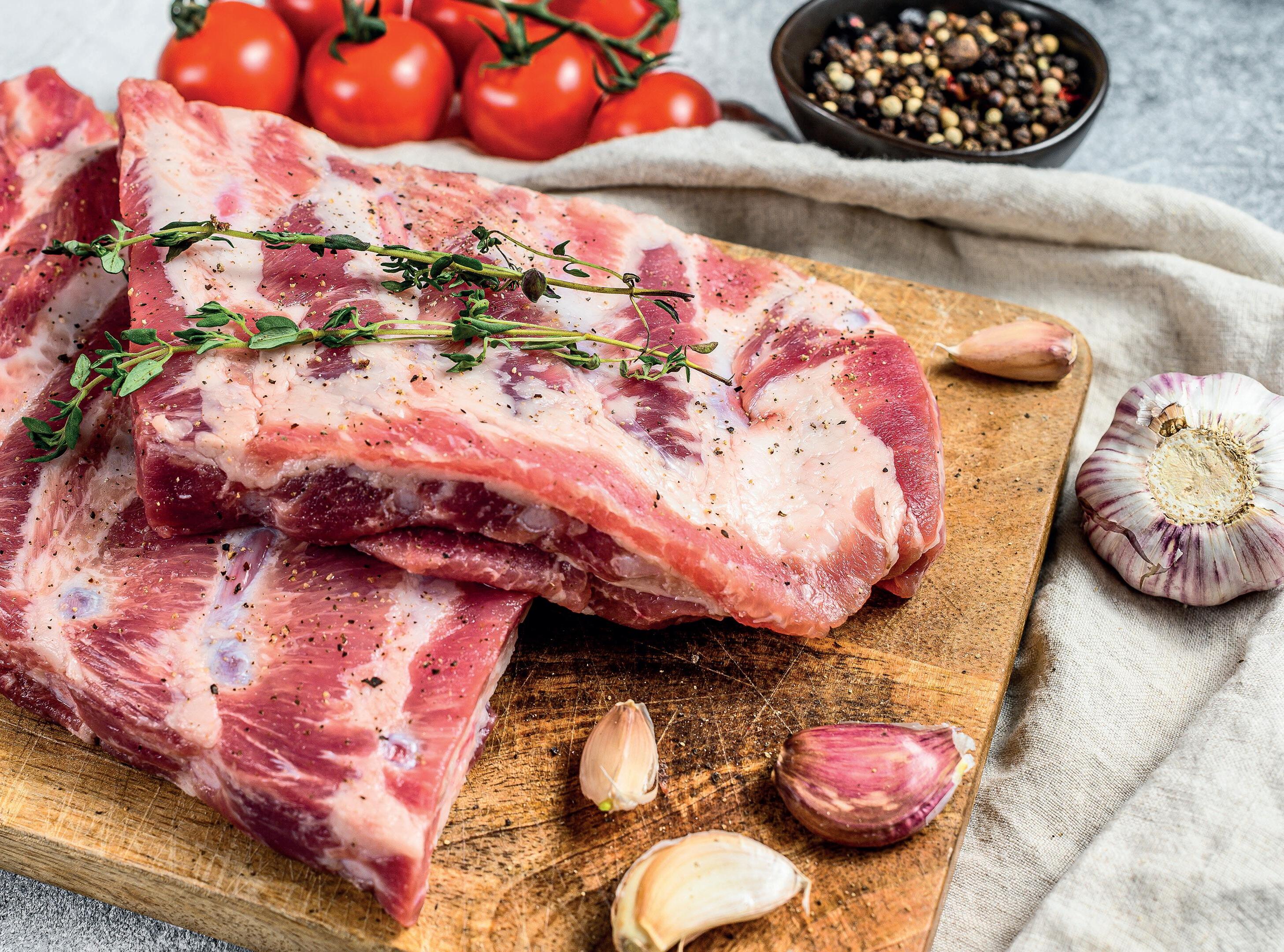 7€,49 LE KG RIBS DE PORC Origine : Luxembourg ou France