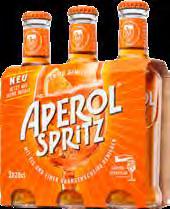 SPRITZ "APEROL" Cocktail prêt à servir. 10,5 % vol. 3 x 20 cl (60 cl). Le L : 13,32 €. Par 2 ( 1,2 L) : 11,98 € au lieu de 15,98 €. Le L : 9,98 €.