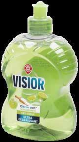 LIQUIDE VAISSELLE(1)(2) “VISIOR” 500 ml. Hors Liquide vaisselle Peaux sensibles. Le L : 1,62 €. Différentes variétés(3)