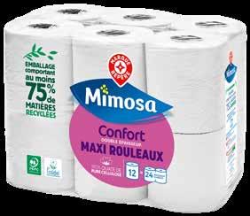 PAPIER TOILETTE BLANC COMPACT DOUBLE ÉPAISSEUR “MIMOSA” 12 maxi rouleaux. soit 1€,08 sur la carte