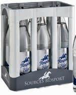 EAU MINÉRALE NATURELLE ET LÉGÈREMENT PÉTILLANTE "ROSPORT BLUE" Hors vidange. 6 x 1 L (6 L). Le L : 0,95 €. Par 2 (12 L) : 8,55 € au lieu de 11,40 €. Le L : 0,71 €.