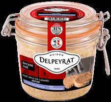 FOIE GRAS DE CANARD ENTIER “DELPEYRAT” Au sel de Guérande, Pointe de poivre ou Pointe d'Armagnac 300 g. Le kg : 76,63 €.
