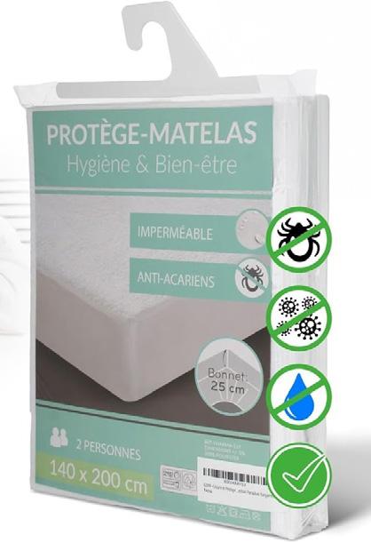 - 180 x 200 cm : 14,95 €. Imperméable. Anti-acariens. Bonnet : 25 cm.