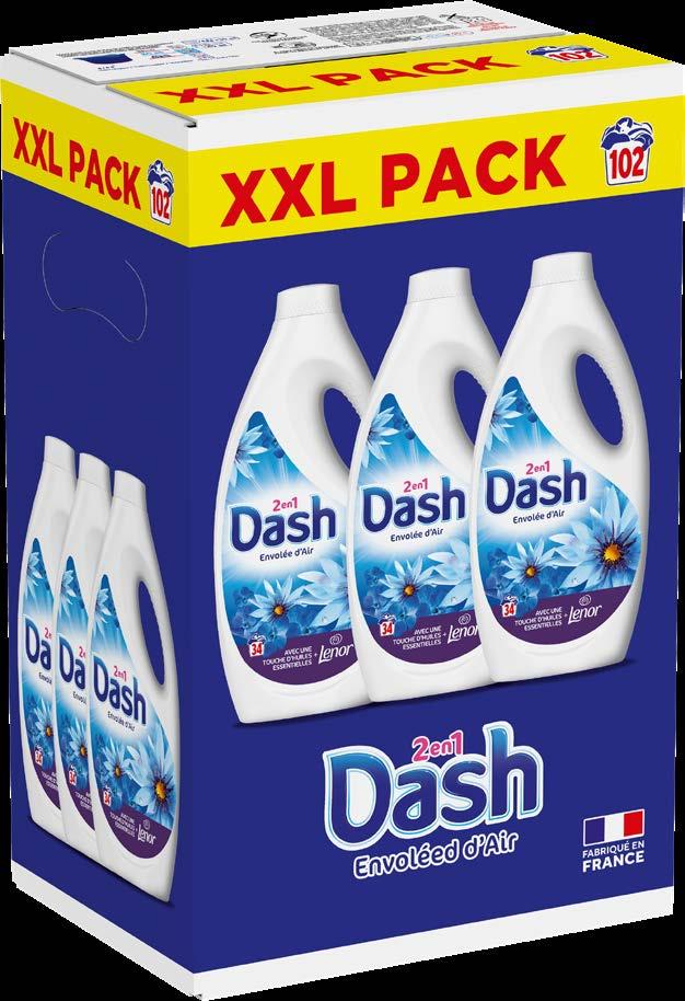 ACHETÉ LESSIVE LIQUIDE(2)(3) “DASH” 3 x 34 lavages (4.59 L). Le L : 4.02 € Différentes variétés