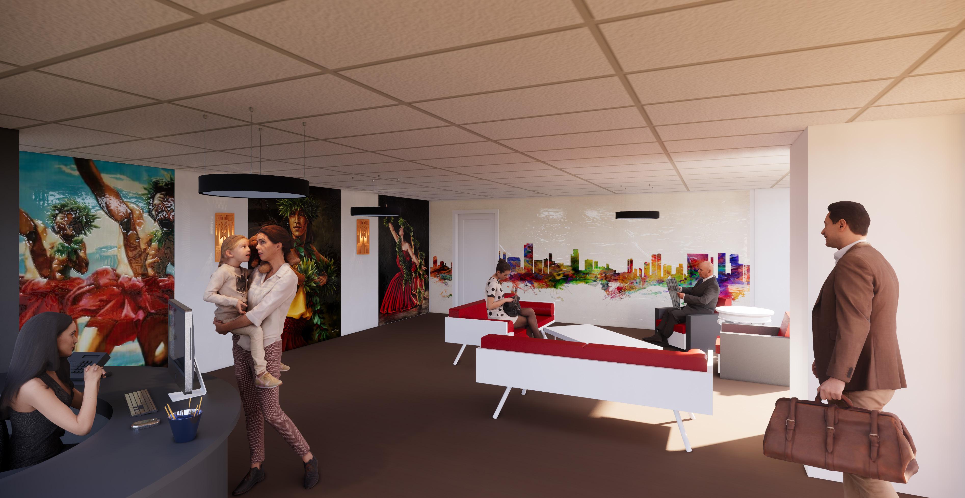 Cloud Wave has opened a new branch in Honolulu, HI. The main concept was to incorporate the ocean culture and island dancing into the design.We not only wanted their clients to feel like they can help but also that they are still one with the island.