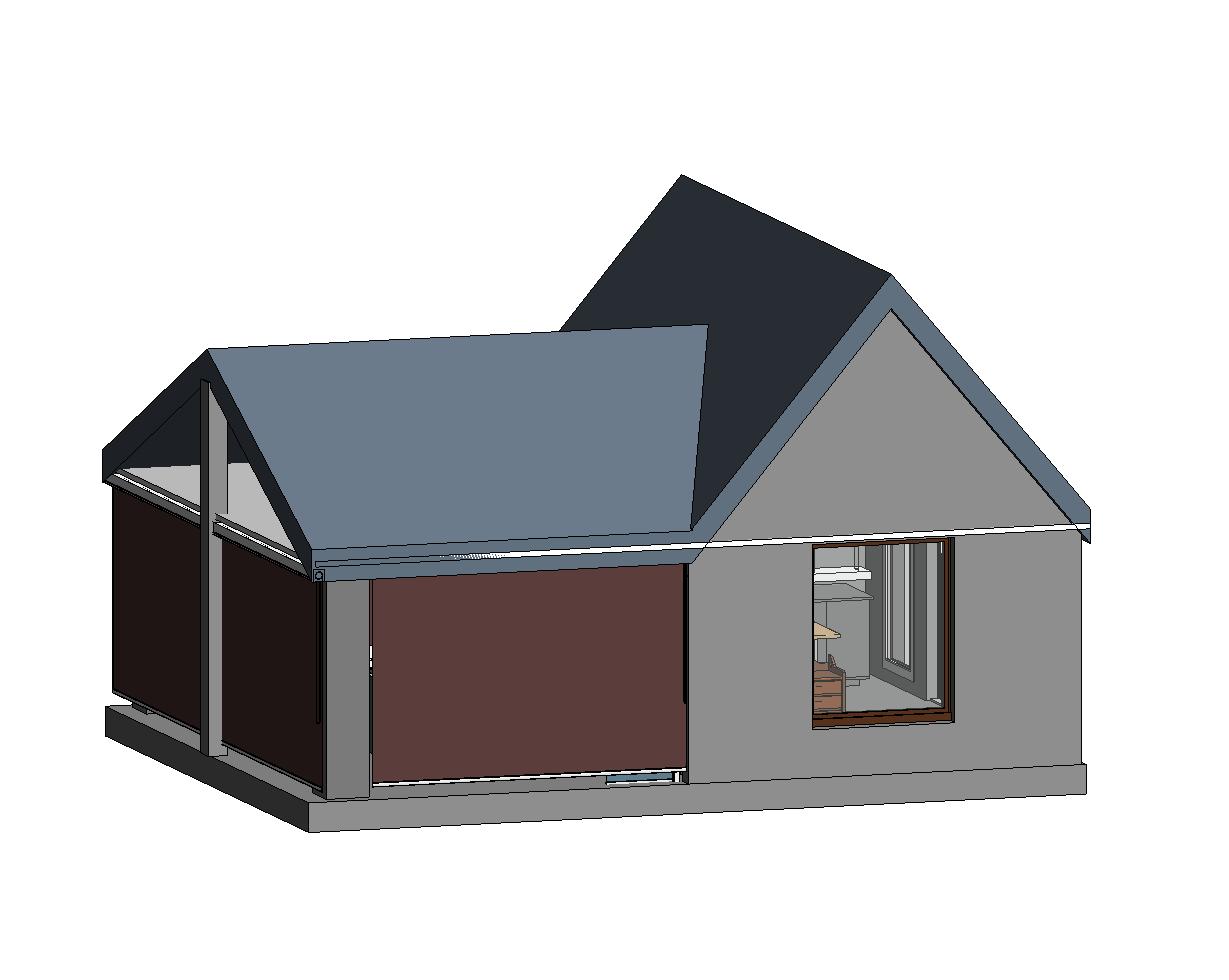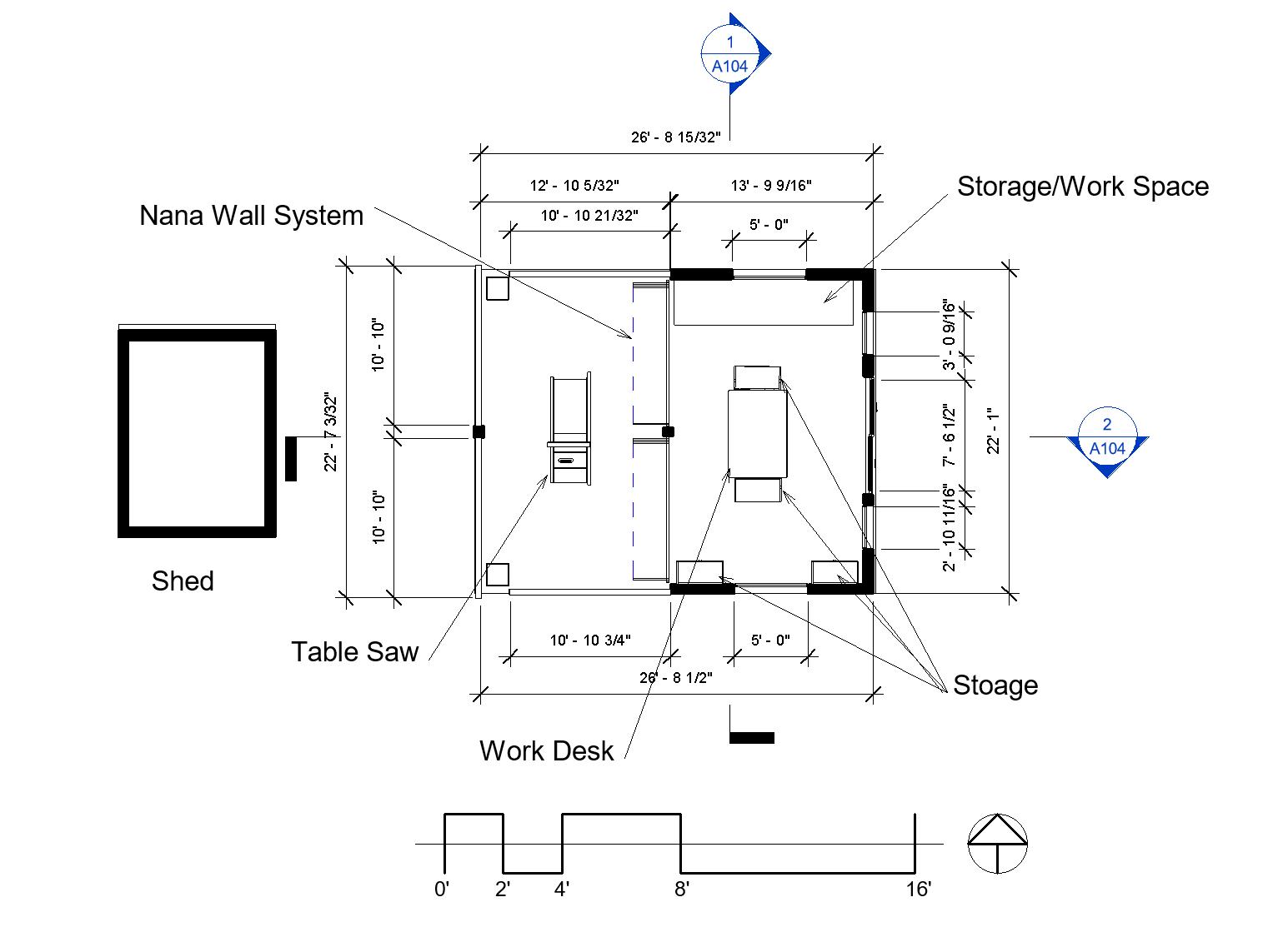The client Mr. Lantz expressed that he needed a space where he was able to work on his projects and watch his two young girls. In his back yard I have taken the slab of concrete and transformed it into a workshop. He expressed that there needed to be room for his table saw and lots of storage. For all his tools. There also needed to be a vent so that all the dust was collected somehow. This shed has a covered part that in enclosed and a part that he is able to go out and lift up the curtains and look out into his backyard.