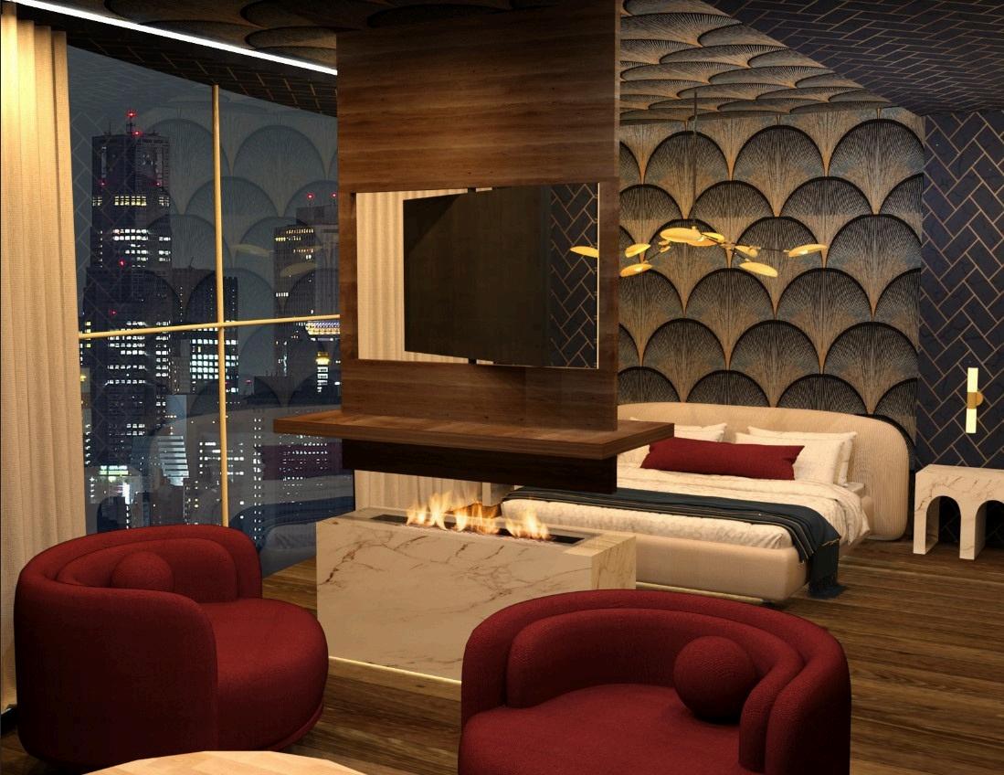 NESTLEDINTHEHEARTOFSHNJUKU JAPAN THESHNJUKUGRANDHOTELREDEFINESURBAN LUXURYWITHABOLDANDARTISTCAPPROACHTODESIGN.MOVNGBEYONDTHEEXPECTED NEUTRALPALETTEOFTENASSOCATEDWITHTRADTIONALJAPANESEHOSPITALITY THEHOTEL EMBRACESARCHER,DARKERCOLORSCHEMETOCREATEANATMOSPHERETHAT SINTMATE, ROMANTIC,ANDUNAPOLOGETICALLYMODERN.