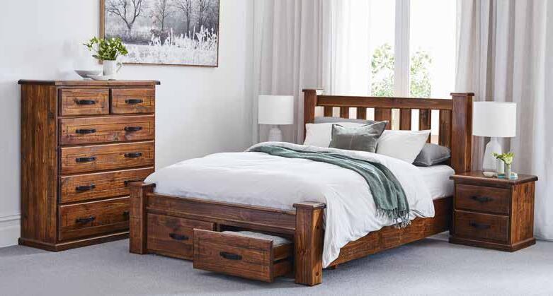 Hotham collection: King bed, Double bed, King single bed, Single bed, Bedside table, Tallboy