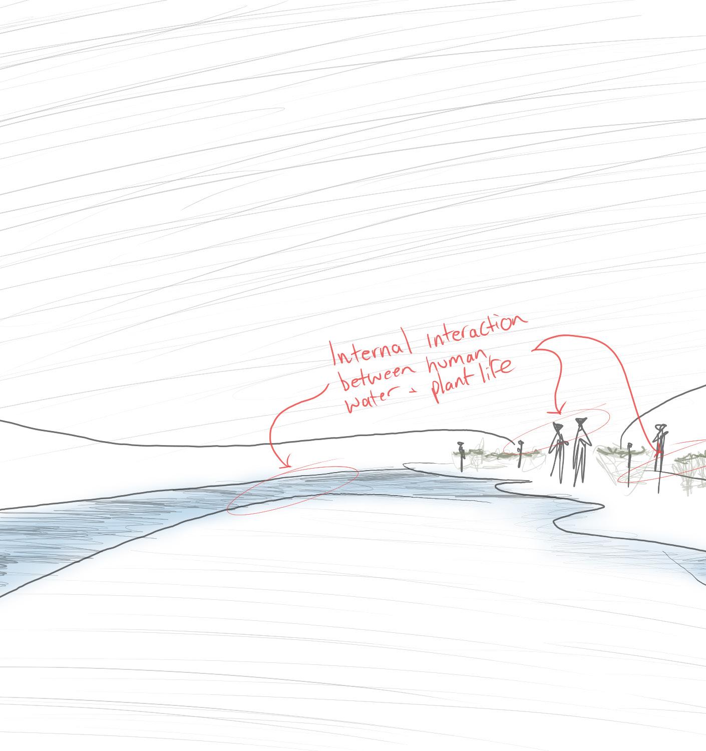 Eventually the design connects to the floating pier in a seemless movement from public to agricultural space, allowing the entire design to function as a seamless pathways into the water.