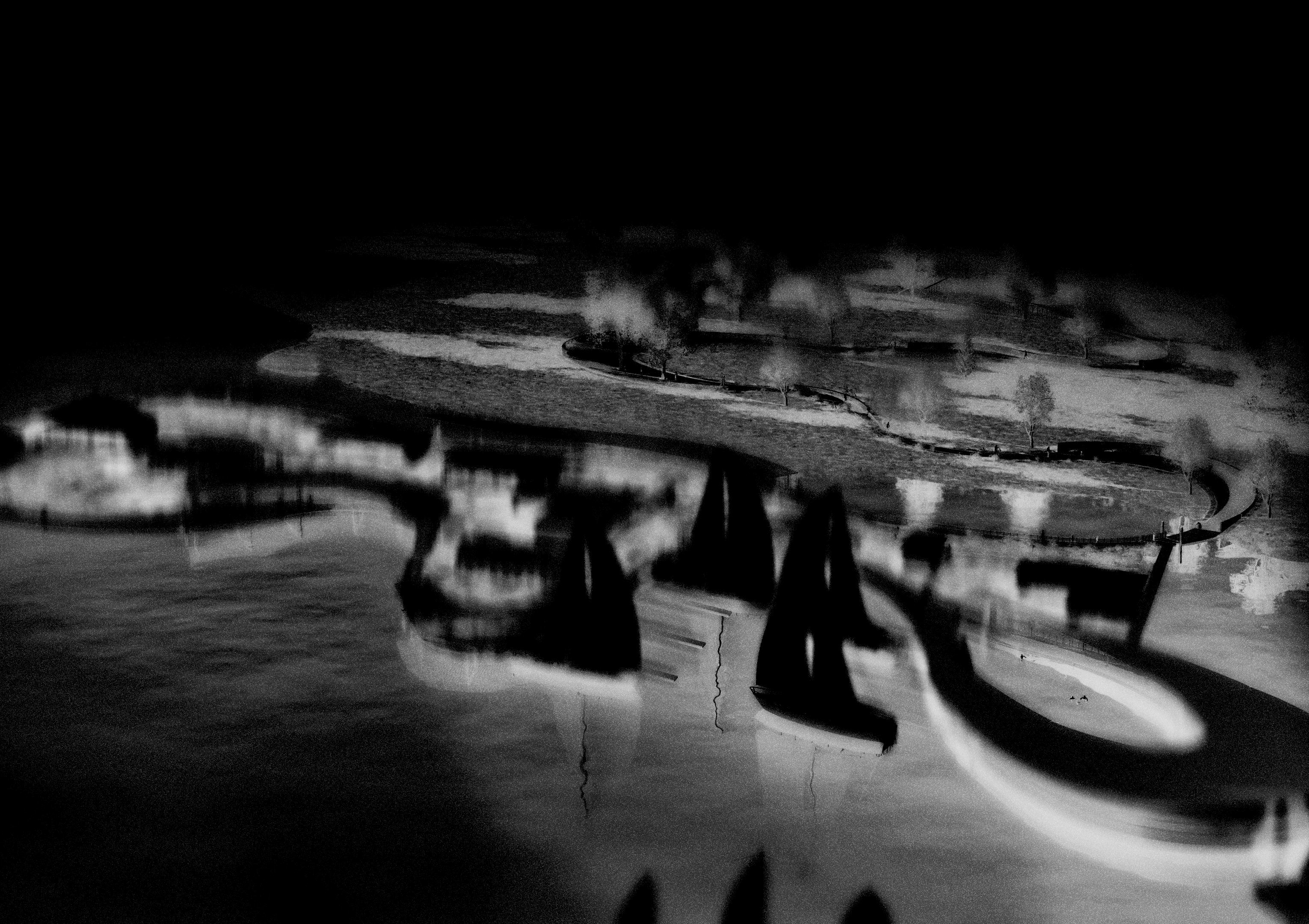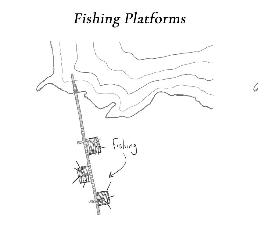Where I felt this design failed was the large structural and rigid pier design on the south side. It bulky and abrasive design took away from the lightweight, dynamic, floating deisgn that followed the agriculture and hut areas. This design felt like a step away from the fluid and performative experience portrayed through my films.