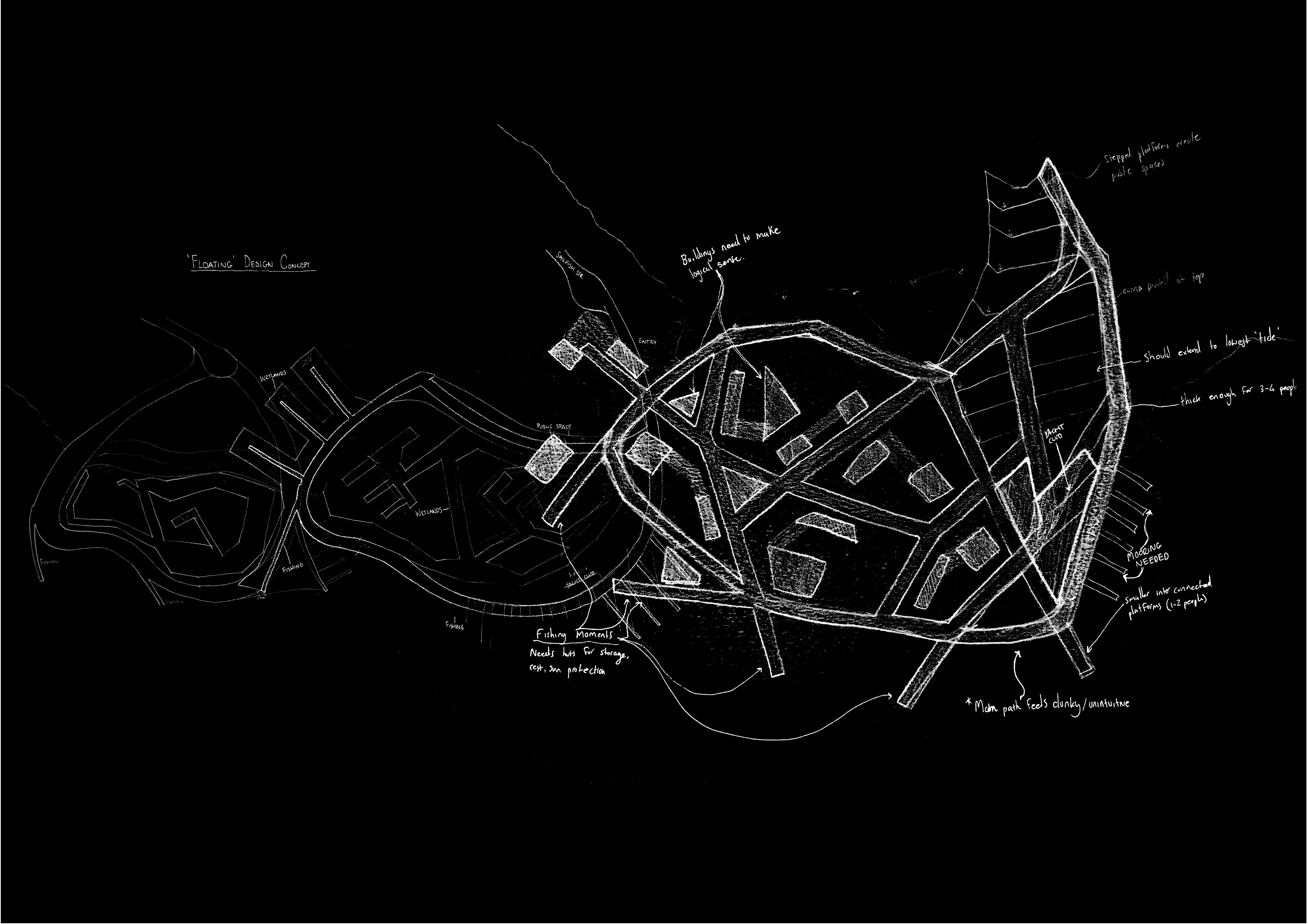 To be able to react to the flux of the water its sits in, I had to carefully consider the floating structural elements that lay the foundation of the design, allowing it to be lightweight but sturdy enough to be anchored in place to prevent lateral movement