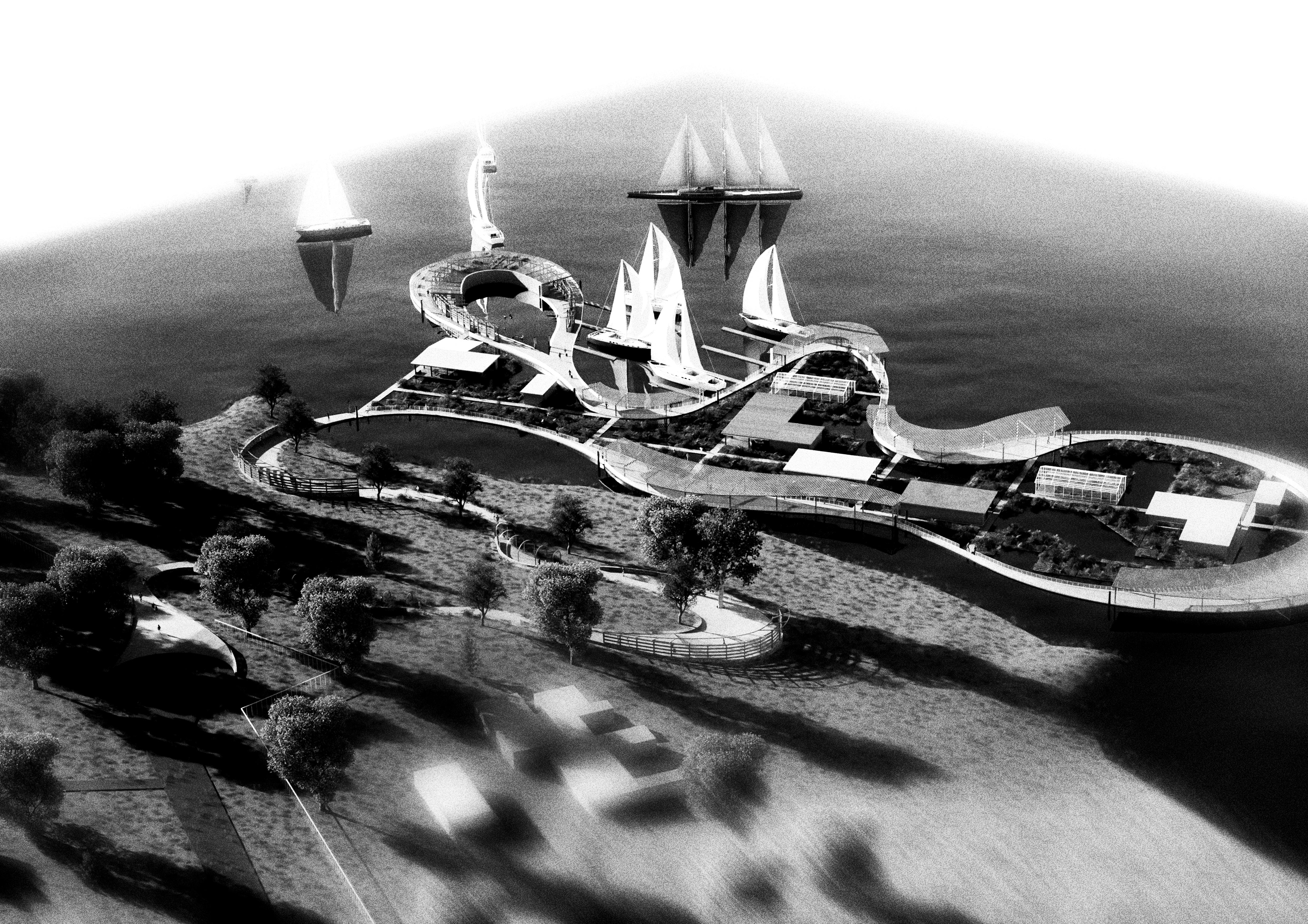 As I began to further develop my concept, I continued my interest in engaging the waterfront now along with more egalitarian programs such as farming, shelters, and markets while still maintaining a spot for the yacht owners.