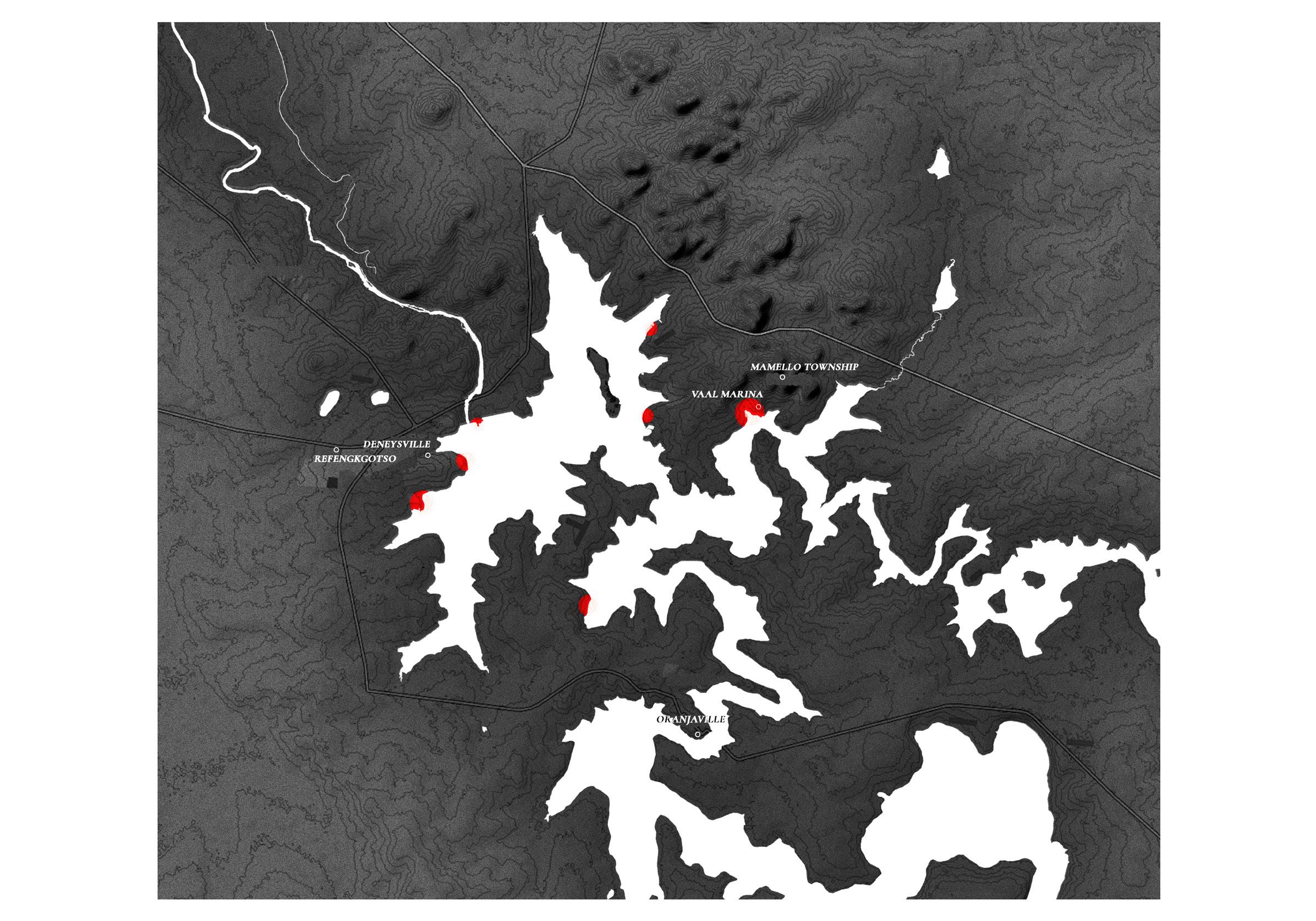 The below diagrams take existing geographic data from mapping in an attempt to understand how the Architecture and infrastructure in the Vaal currently reacts to the constant flux of water levels in the Vaal Basin.
