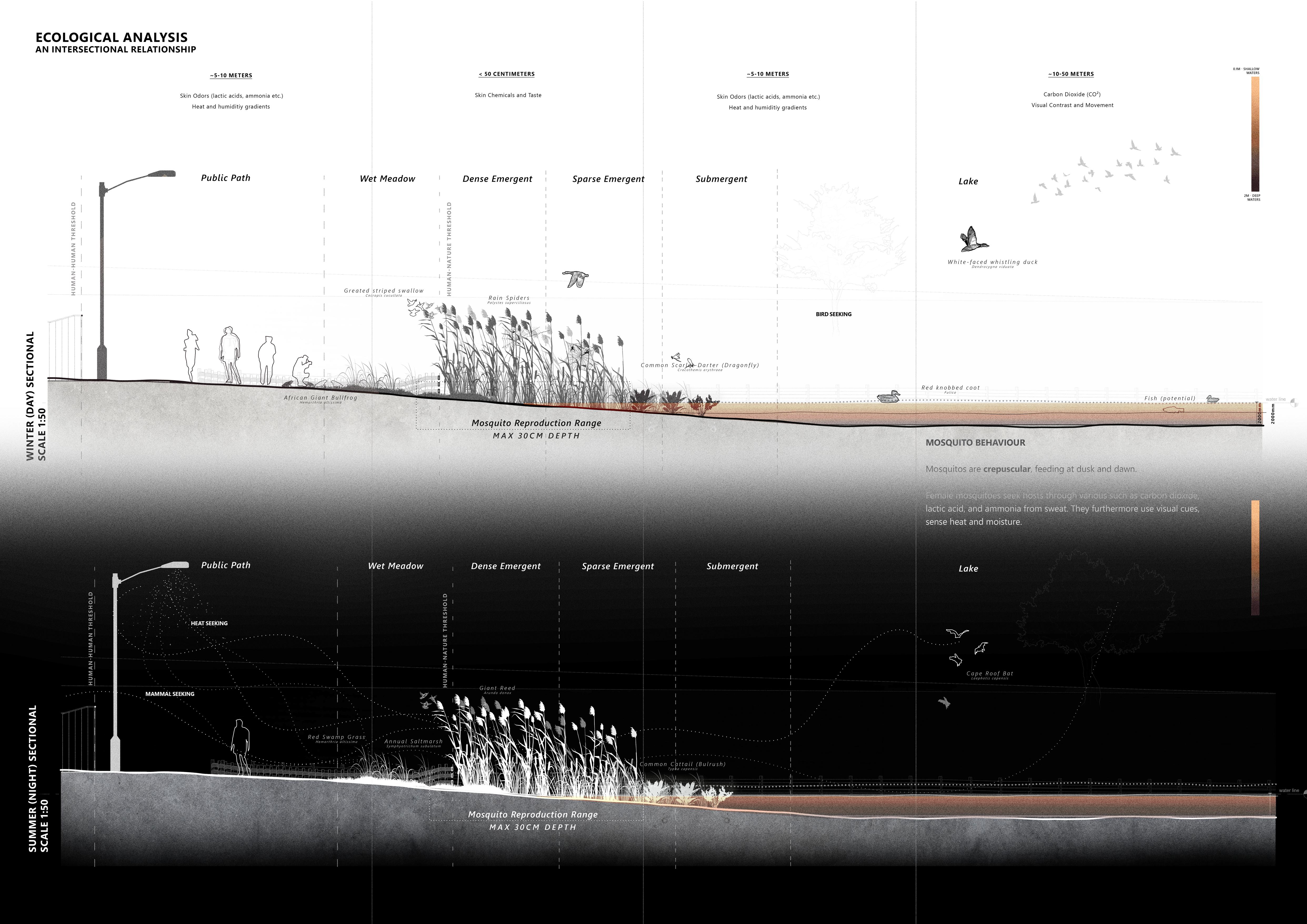 This proposals chosen topic relates to the units theme due to its acknowledgment into the potential effects of climate change in the urban landscape of Johannesburg and how an increase in temperature could correlate towards the reproduction of migrating mosquito species, particularly those that may carry certain strains of diseases, proving to be a cause of concern for the residents of urbanised Johannesburg, especially to those situated in landscapes with ecological systems such as depressional wetlands or similar water systems, providing breeding grounds for the aforementioned mosquito species. By deeply researching not only scientific and technical aspects of the mosquito, but furthermore its relevance to culture in the context of South Africa and Johannesburg, gaps in literature and research may be found that allow potential architectural solutions to problems brought about by climate change.