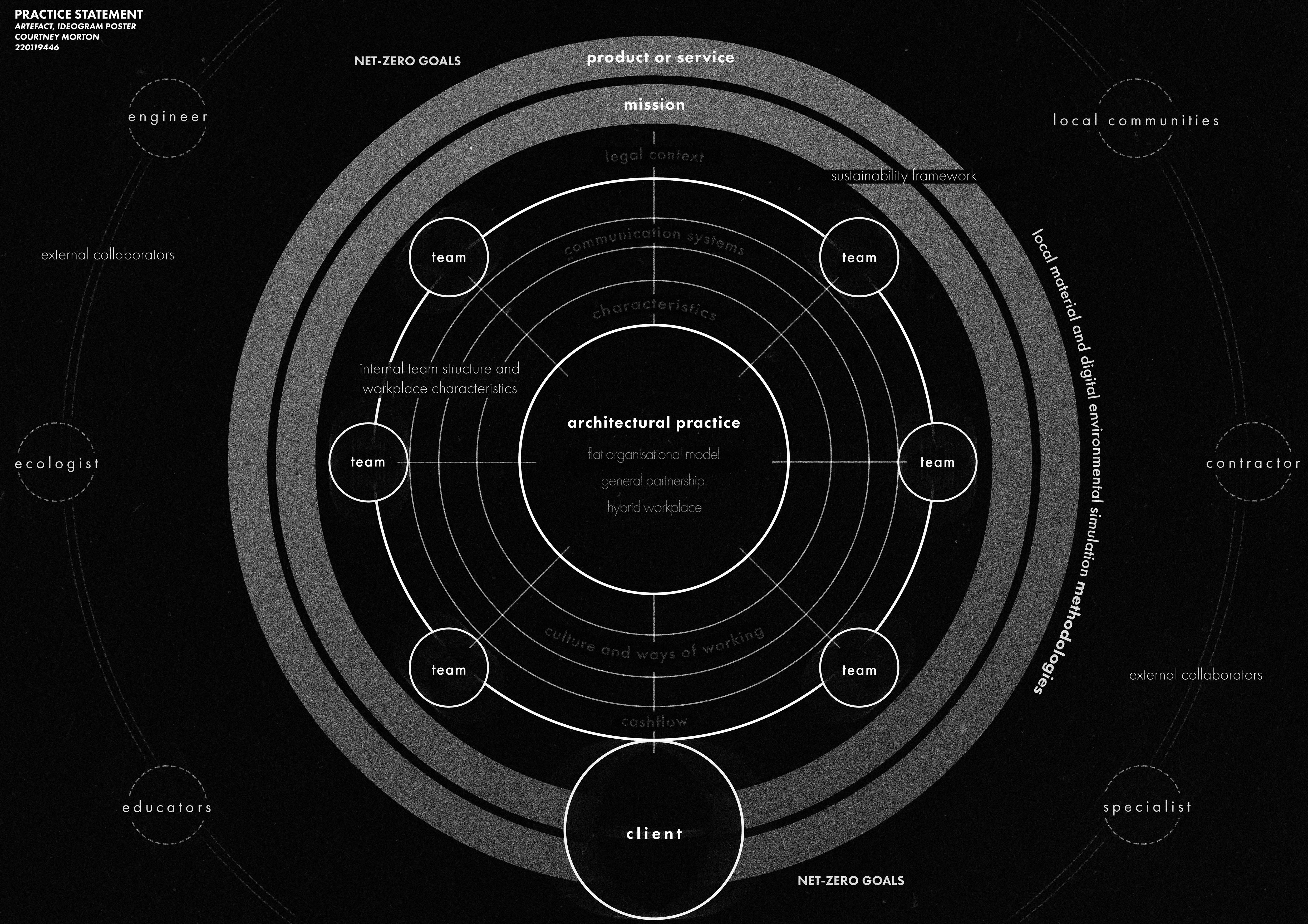 The mission of my practice will aim to address climate change through implemented design strategies and ideologies that can be idealised in measurable but still poetic ways. The practice’s research interests will align with multiple sustainable practices, understanding passive design, local and sustainable material choice and empowering local communities. The practice’s success will not only be defined by its adaptation od carbon reductions strategies, but furthermore through the continued education of clients and communities towards ecological literacy.