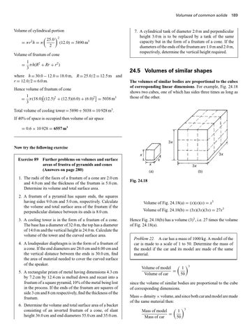 24.5 Volumes of similar shapes The volumes of similar bodies are proportional to the cubes of corresponding linear dimensions. For example, Fig. 24.18 shows two cubes, one of which has sides three times as long as those of the other.