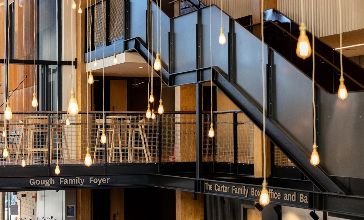 Welcome to the home that The Court Theatre has been seeking for 54 years. The Gough Family Foyer of the new Court Theatre space exemplifies the building’s commitment to sustainability and the use of locally sourced materials; the laminated timber is from Rotorua, the Blackwood floors from the West Coast and the steel is from Bromley. Both auditoria - the Stewart Family Theatre and the Wakefield Family Front Room - have been designed to maximise an audiences’ engagement with the work.