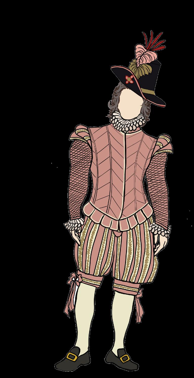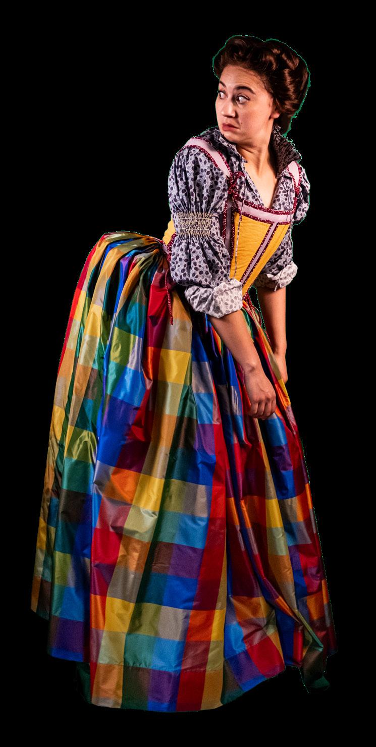 This show has many elements - corsets, oversized skirts, jerkins, doublets, breeches, cod pieces, ruffs, dance boots, tap shoes, gaiters, and hats to name a few. The hair and make up are an important part of the era, and I have a specialist team to help get the wigs and hair to look right and maintain that look throughout the season.
