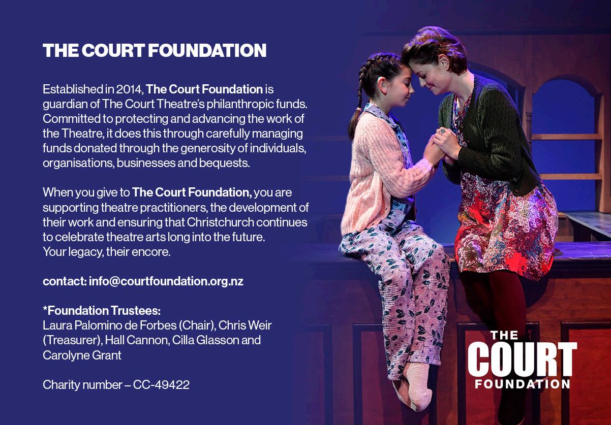 and Mervyn Thompson, there have been hopes and dreams for a permanent venue in which we might put down roots. I would like to acknowledge the many people that have contributed over the years to help us reach this moment, and particularly Philip Aldridge (Chief Executive 20052018), Ross Gumbley (Artistic Director 2006 - 2019) and the Trustees who were tenacious in championing the vision of a new home for The Court Theatre in the period following the 2011 earthquakes.