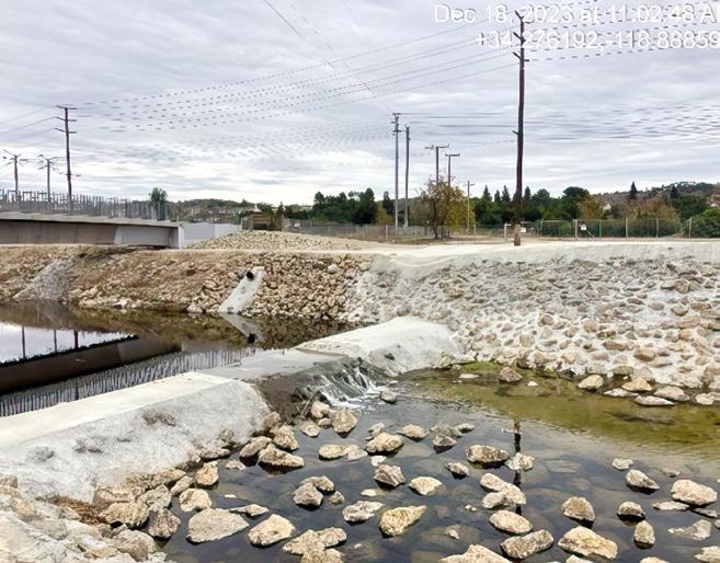 El Proyecto de Sustitución de Estructura de Control de Taludes de Arroyo Simi No. 14 (GCS-14) sustituyó un estabilizador de control de taludes de hormigón y roca seriamente dañado, que se había construido a principios de la década de 1960. Las estructuras de control de taludes actúan como presas en miniatura, o topes de control de velocidad, evitando que la inversión, o el fondo de los ríos erosionen y desgasten las orillas del arroyo. La sustitución de la estructura de control de taludes evitó la erosión y el deterioro del puente peatonal de Leta Yancy. El costo total de construcción de este proyecto fue de $2,819,884.